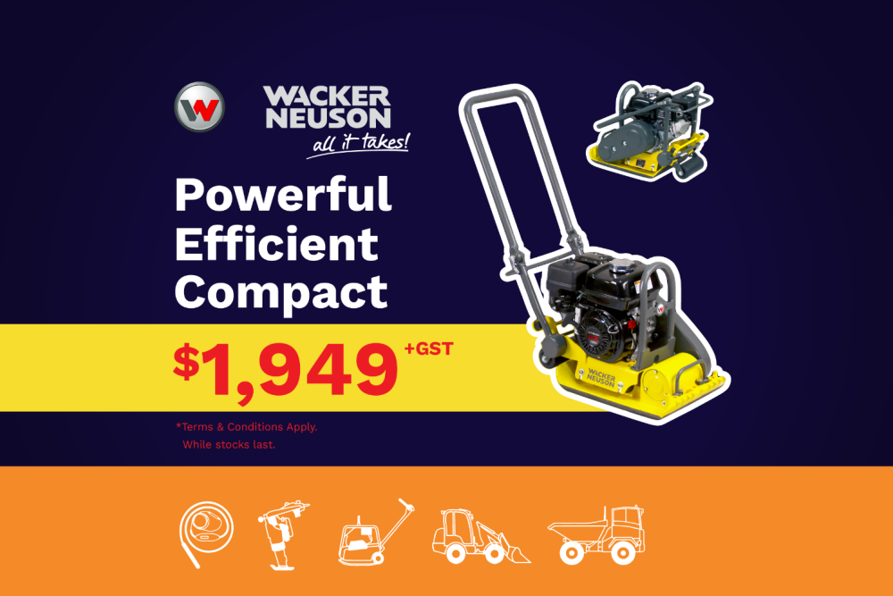Buy a Wacker Neuson VP1135AU 65kg Plate compactor for $1,949 +gst while stocks last!