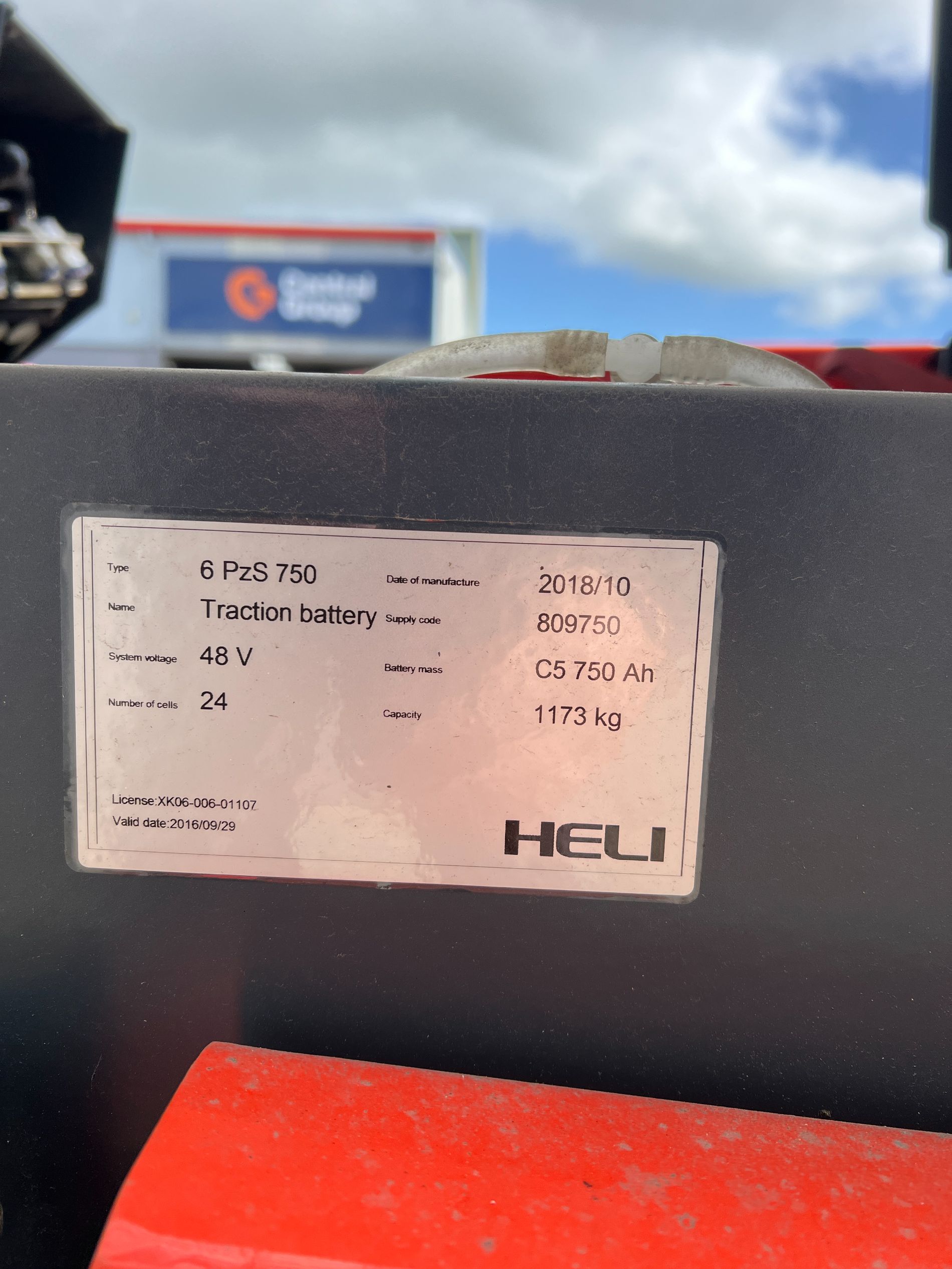 - 2019 HELI EFG320N BATTERY ELECTRIC COUNTERBALANCE FORKLIFT, JUST 156 GENUINE HOURS.