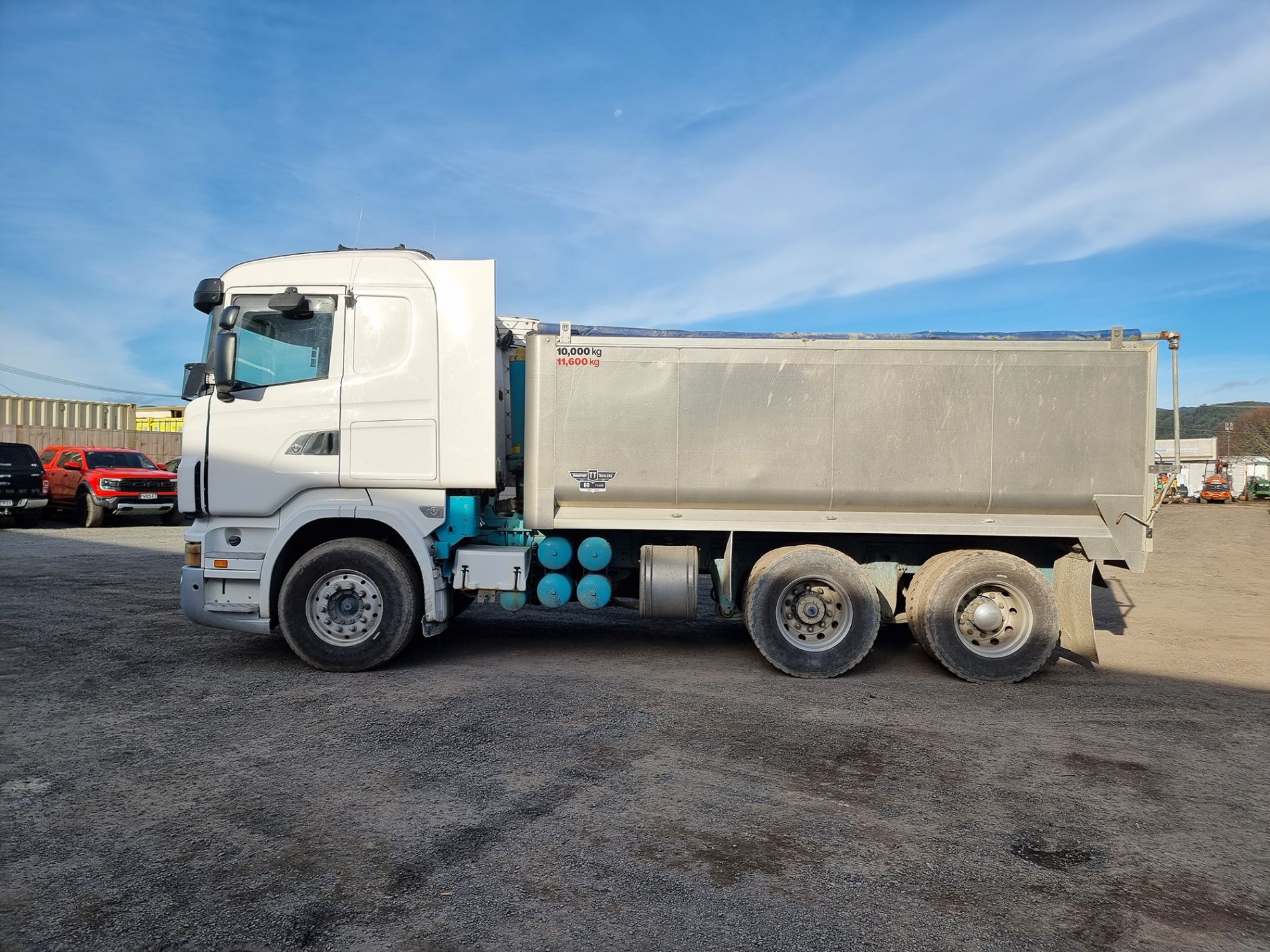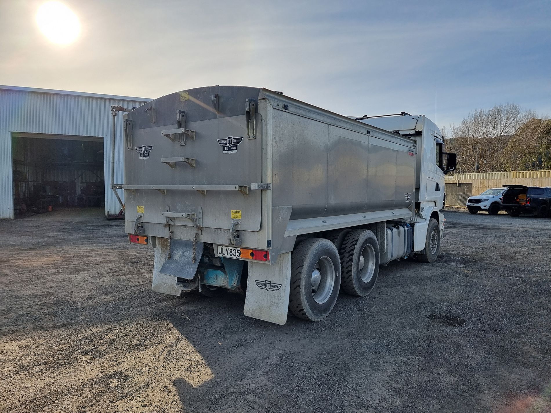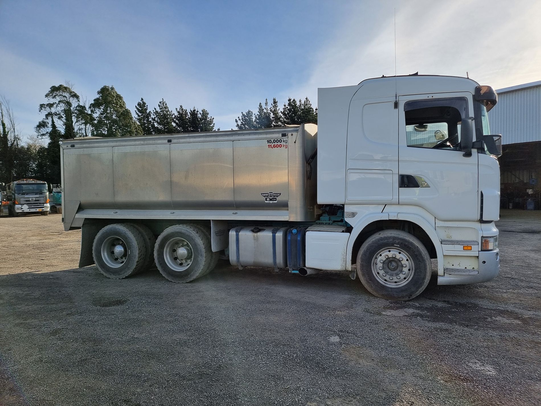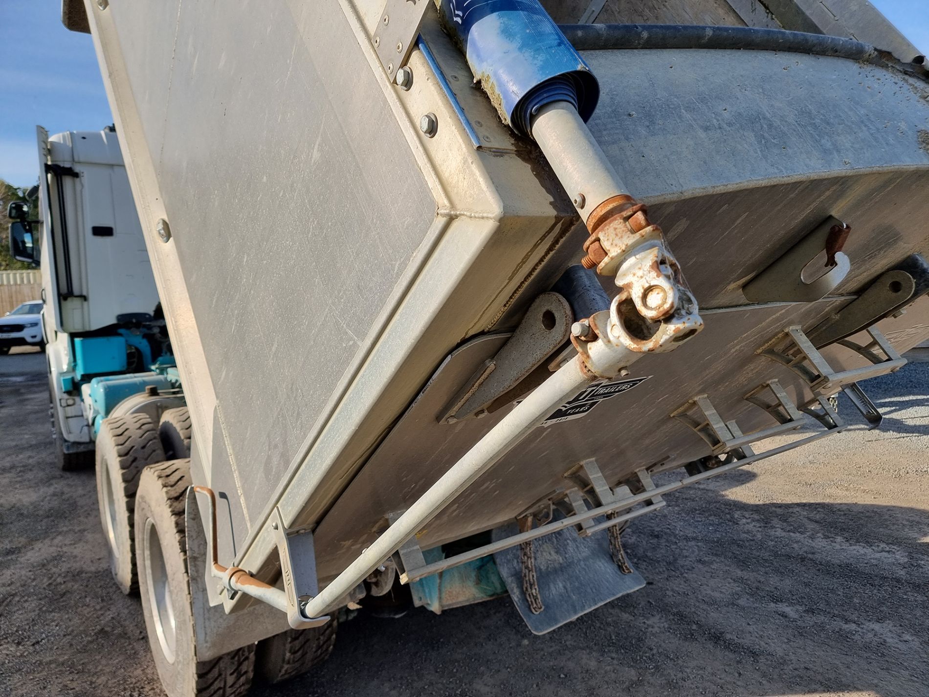 the truck comes complete with transport trailers aluminium bulky tipping body, top hinge gate, air bag rear suspension, 50mm ring feeder with trailer hydraulics.