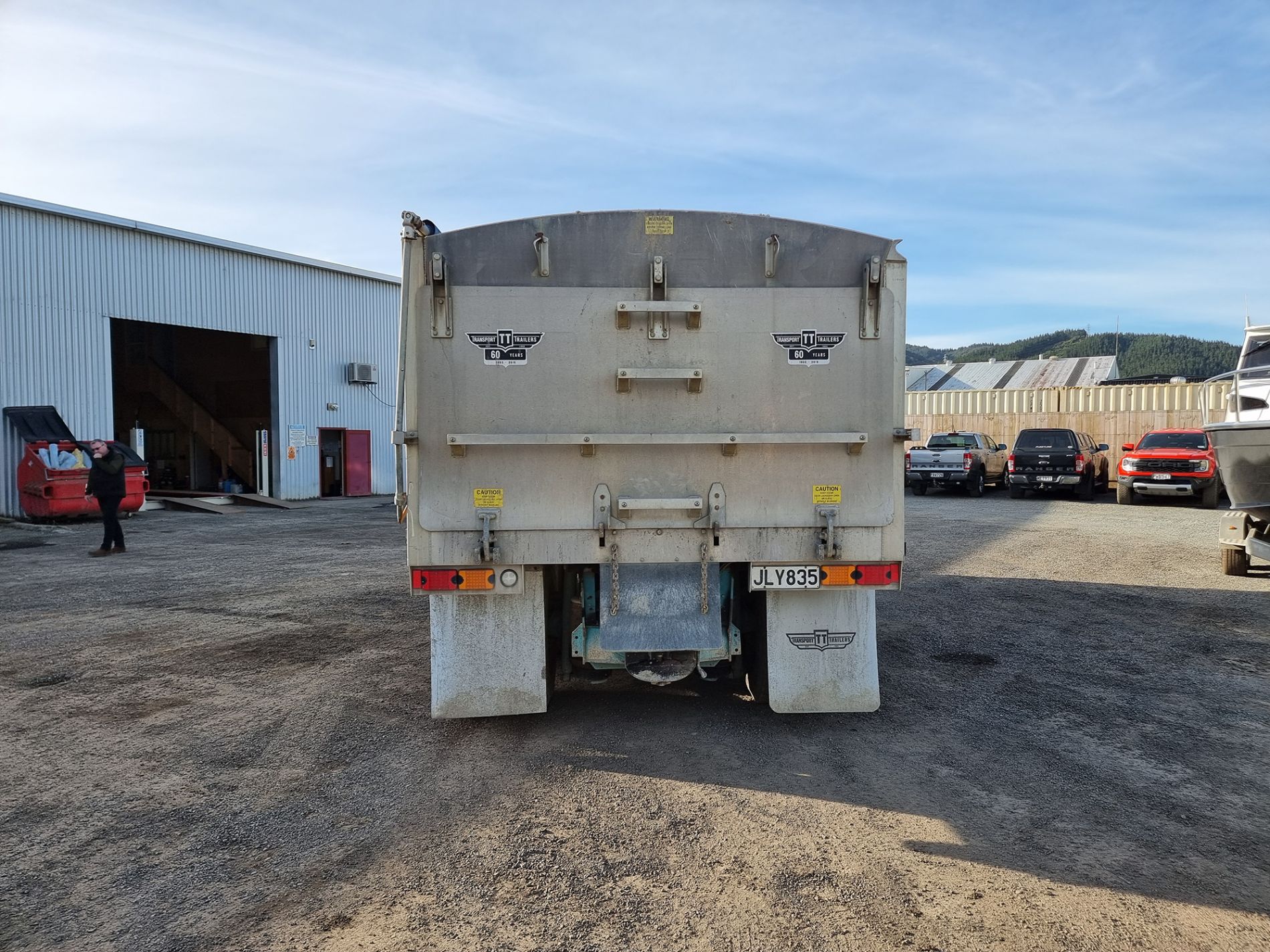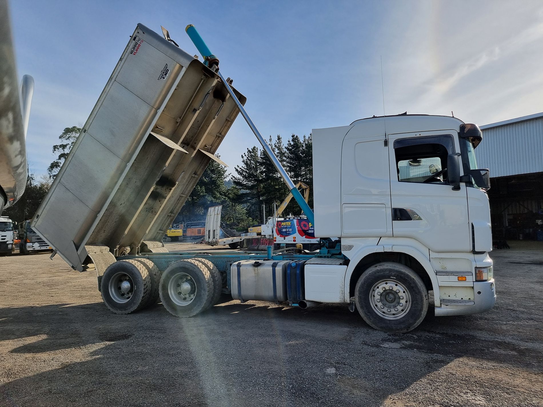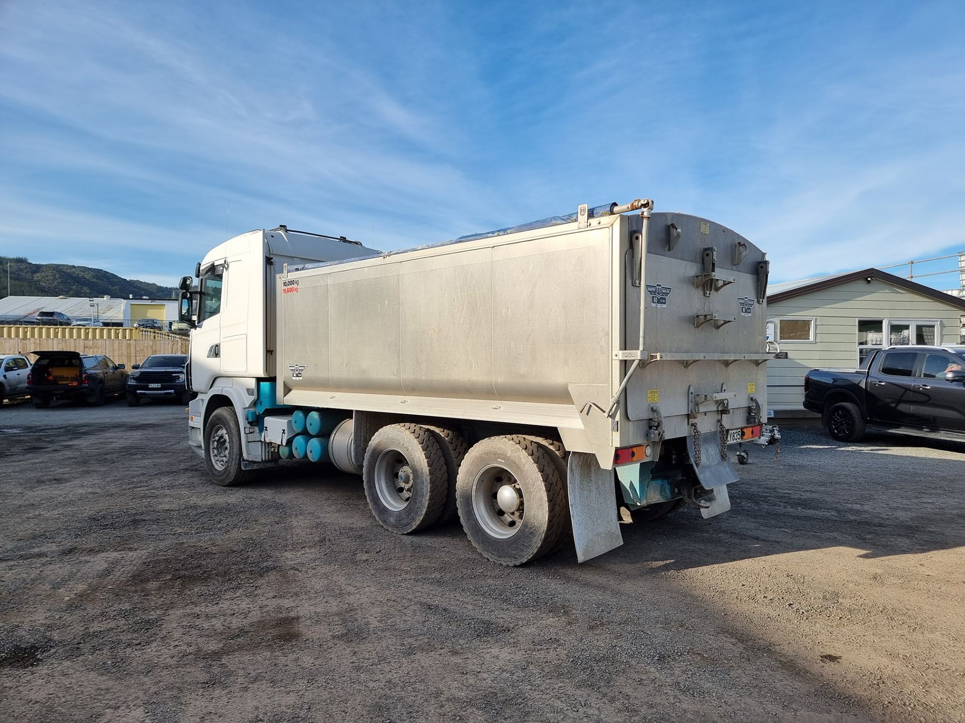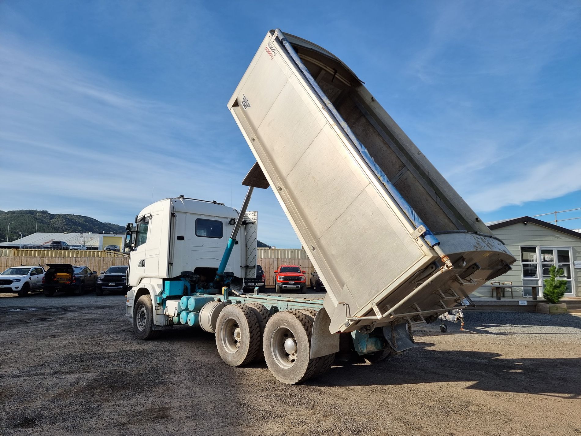 the truck comes complete with transport trailers aluminium bulky tipping body, top hinge gate, air bag rear suspension, 50mm ring feeder with trailer hydraulics.