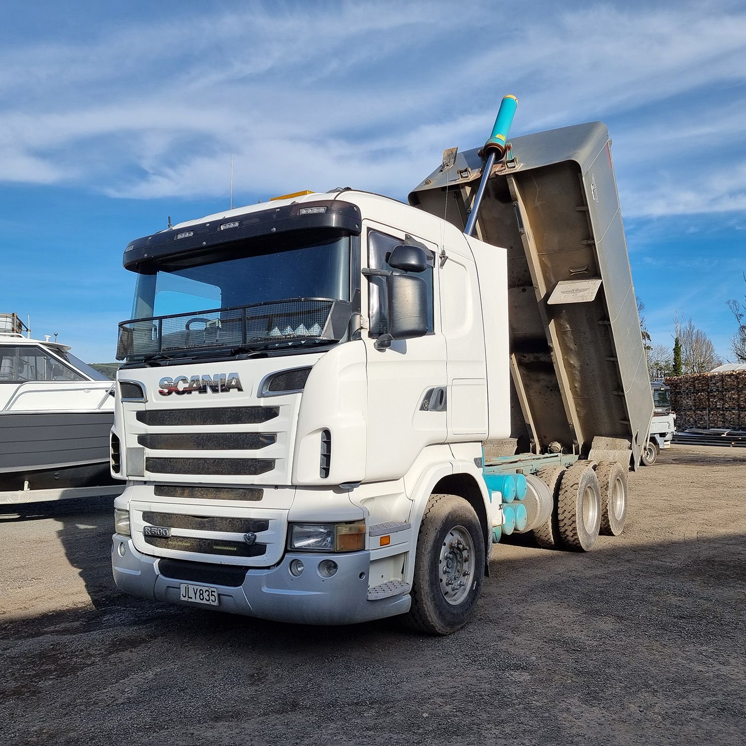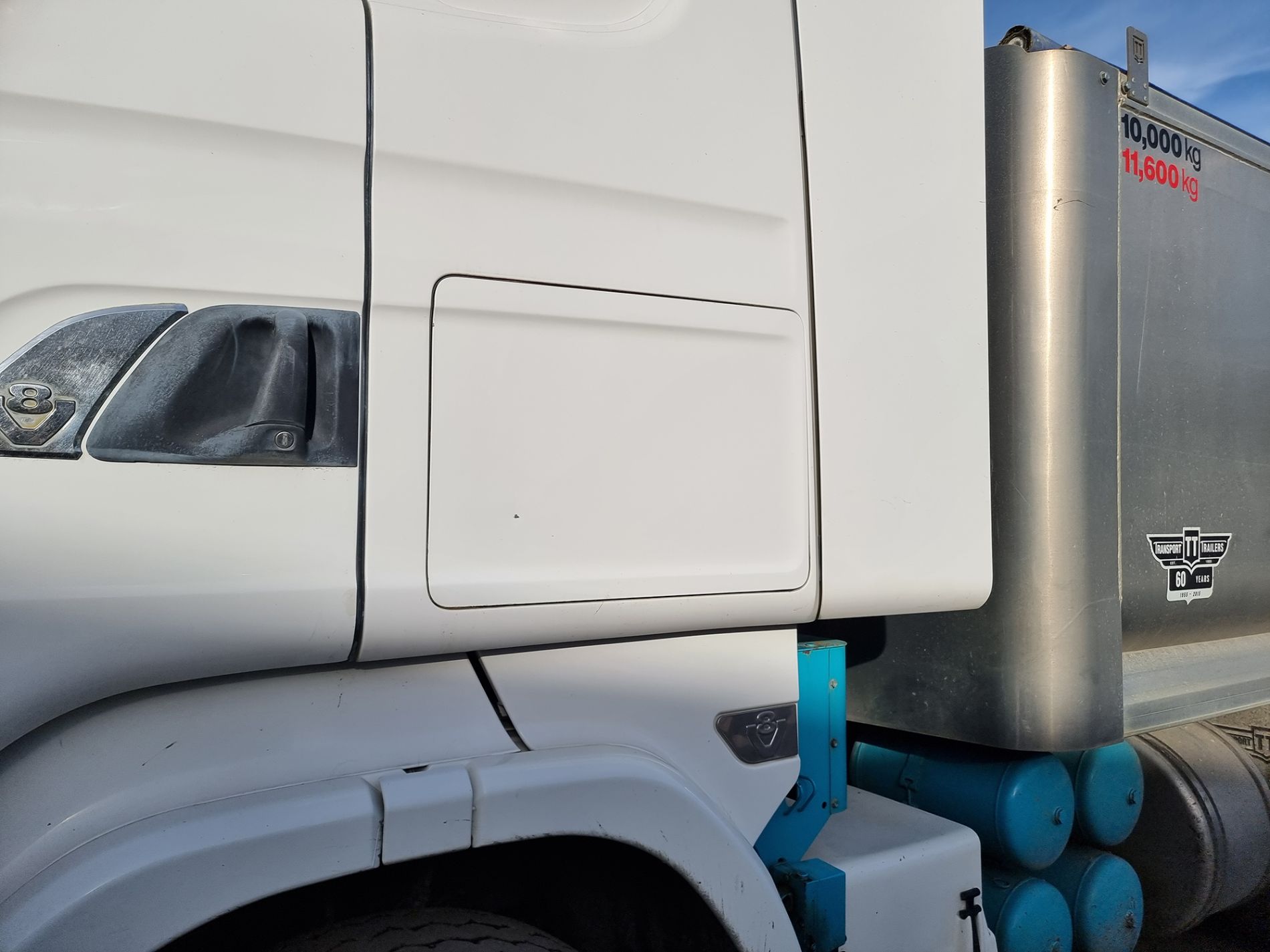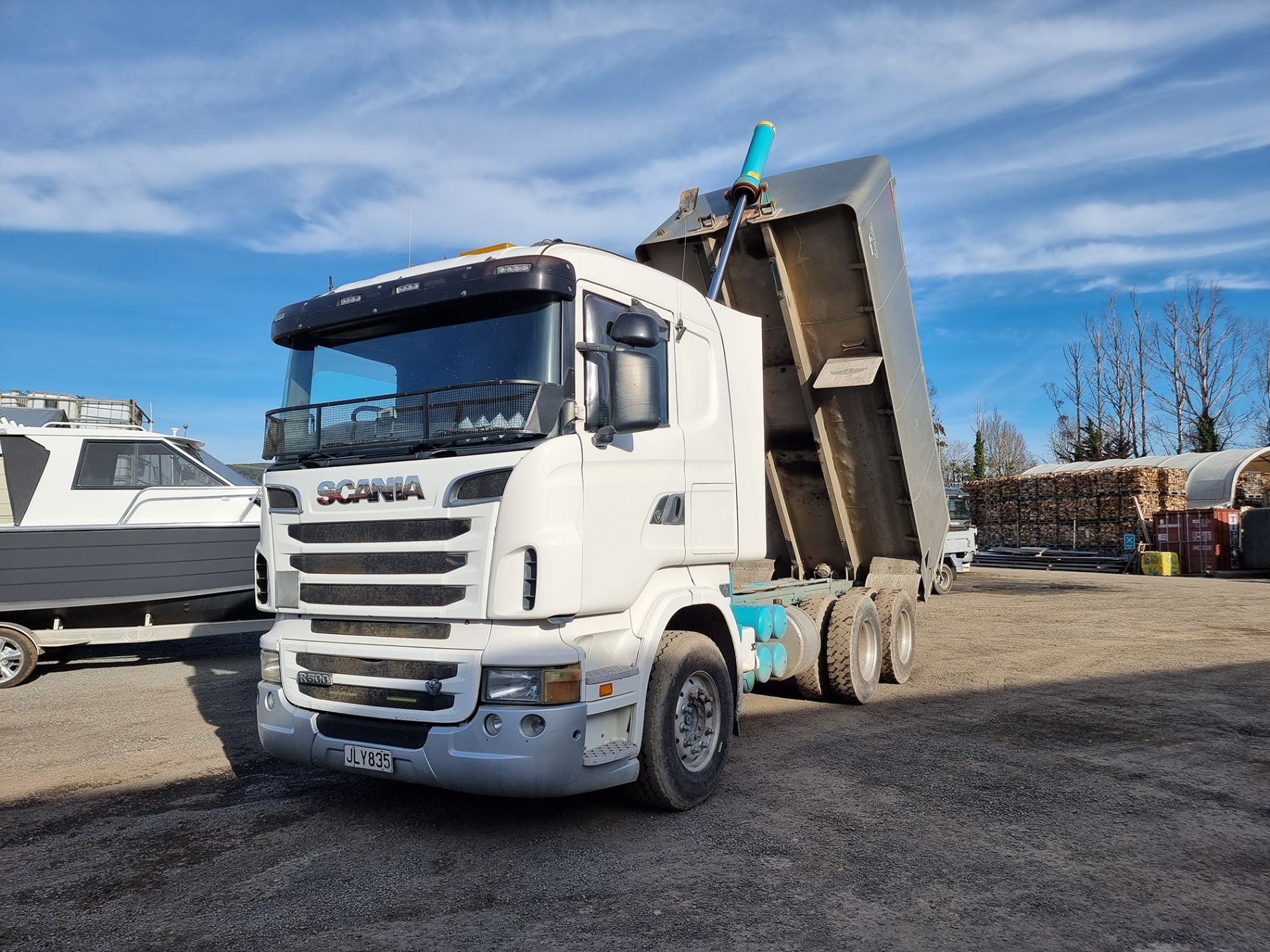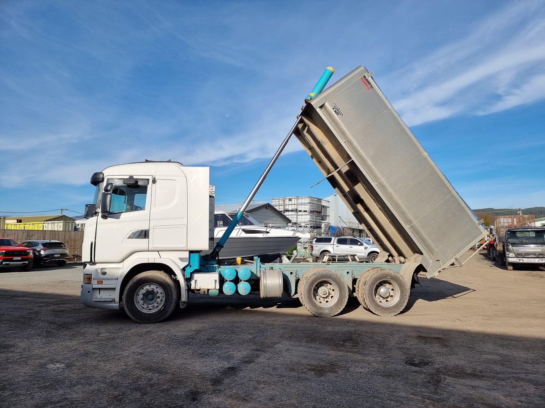 the truck comes complete with transport trailers aluminium bulky tipping body, top hinge gate, air bag rear suspension, 50mm ring feeder with trailer hydraulics.