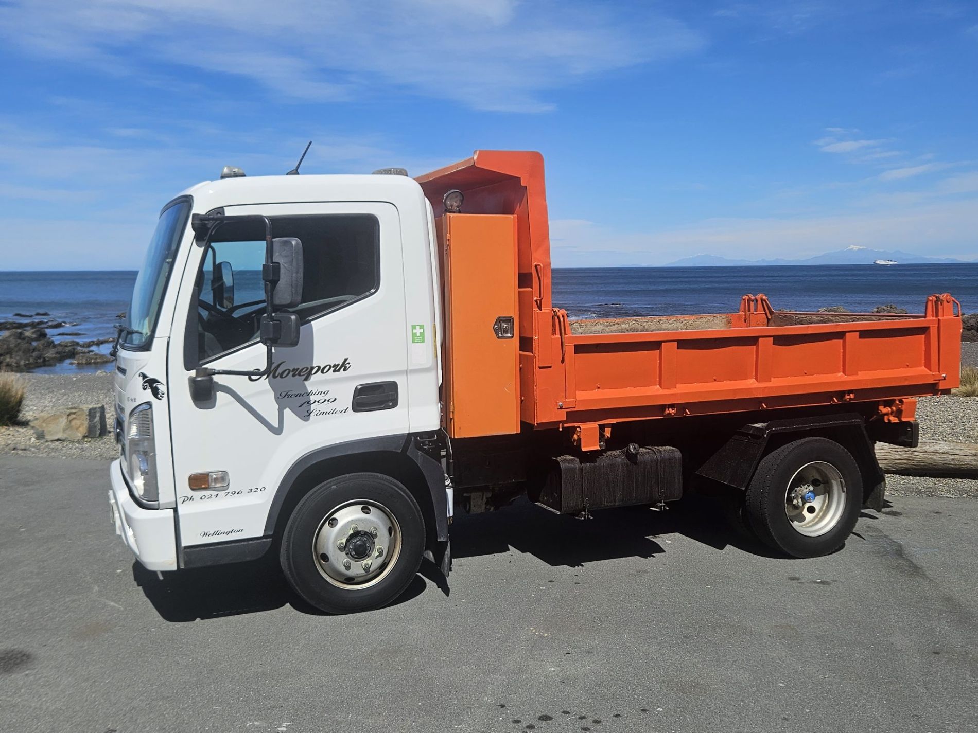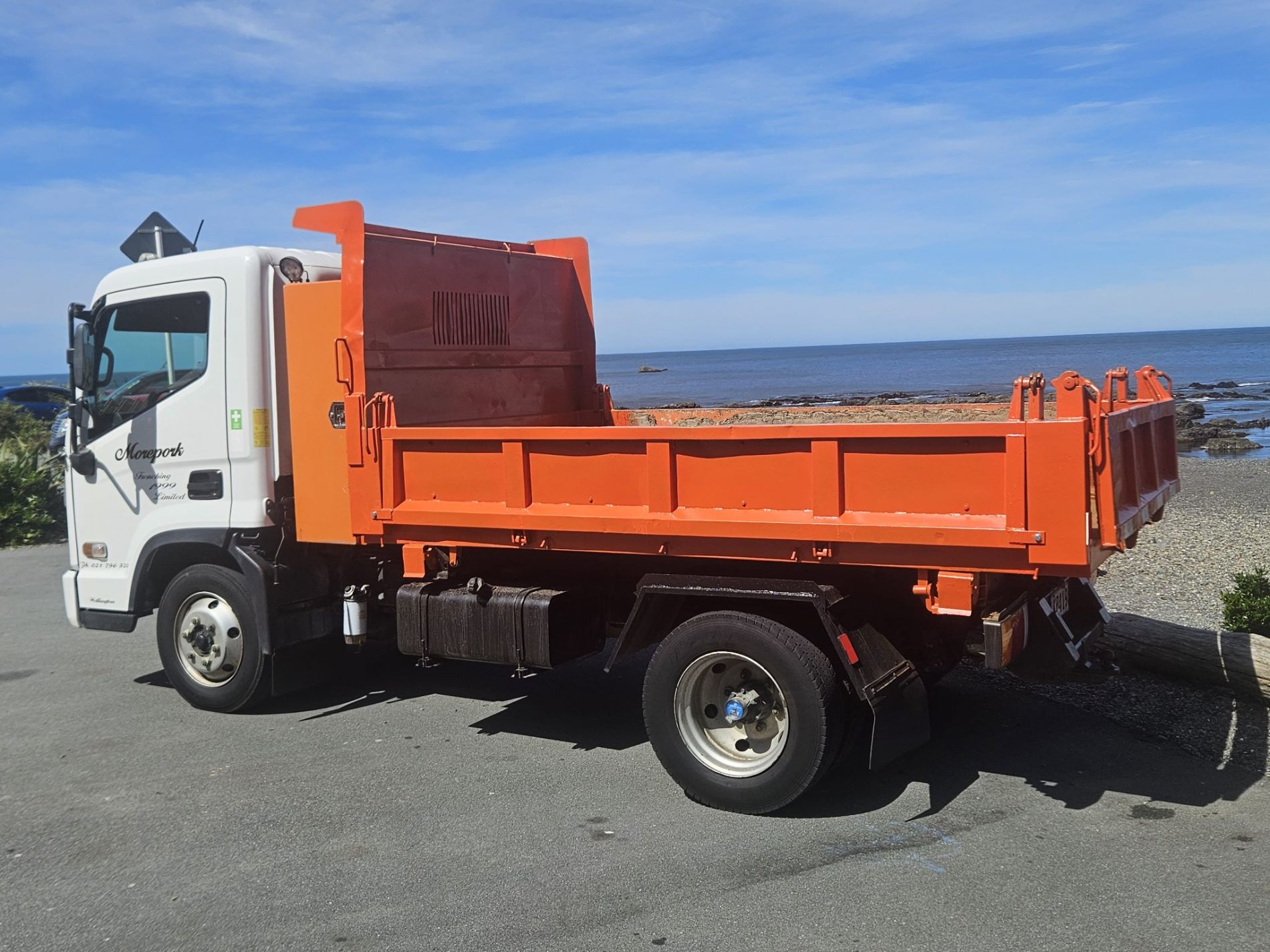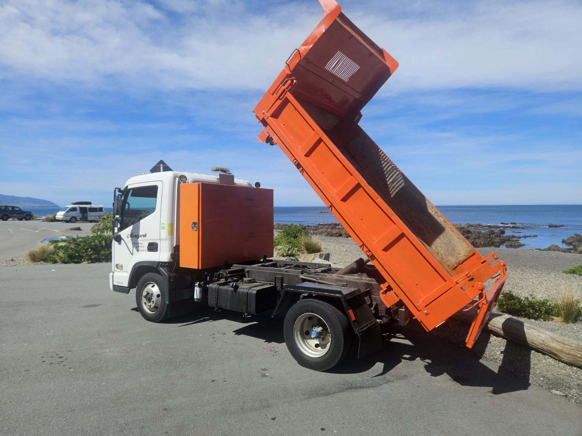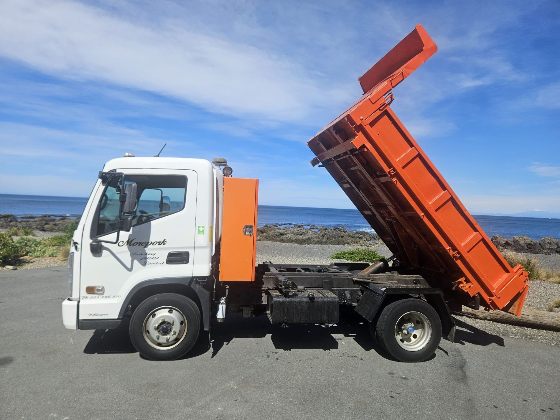 Truck comes complete with stone guard, sun visor, seat covers, floor mats, integrated reverse camera, belmont enginering 10 yarder hard steel 450 grade tipping body with trailer gear.
