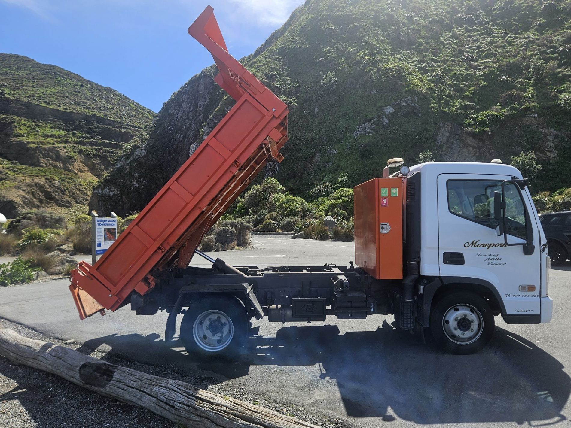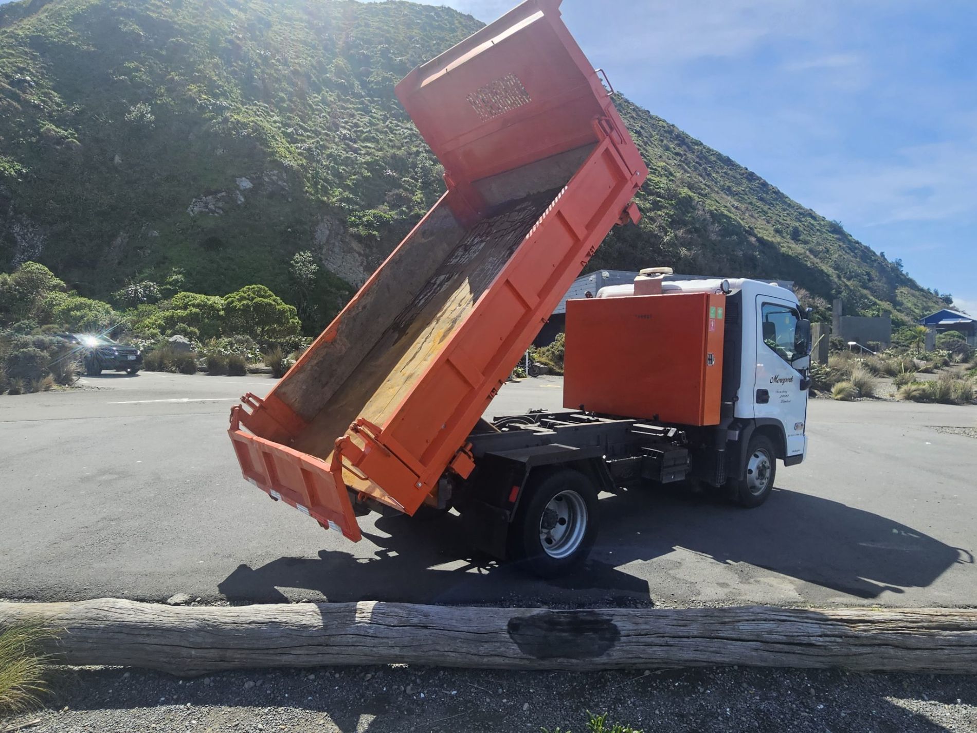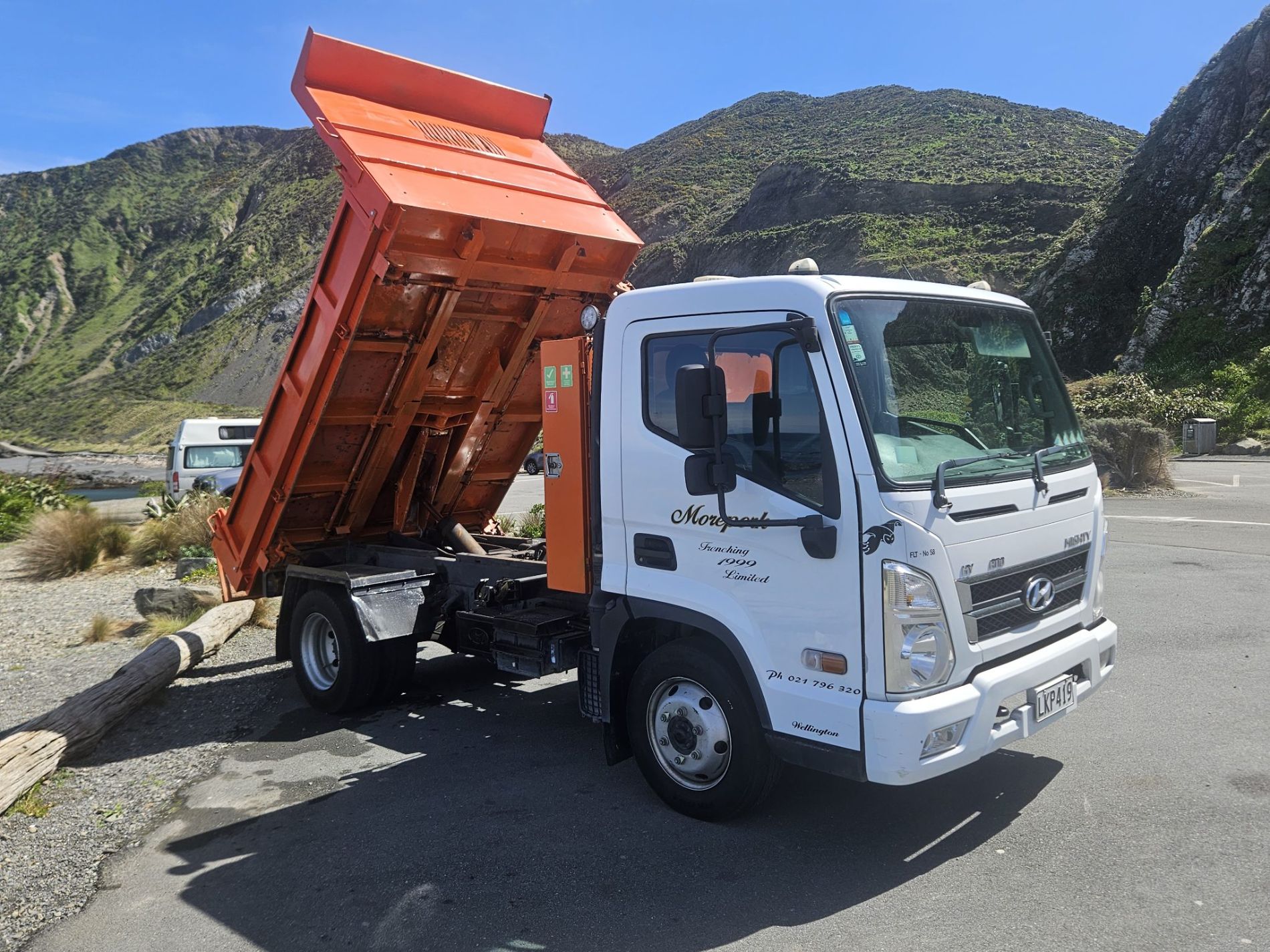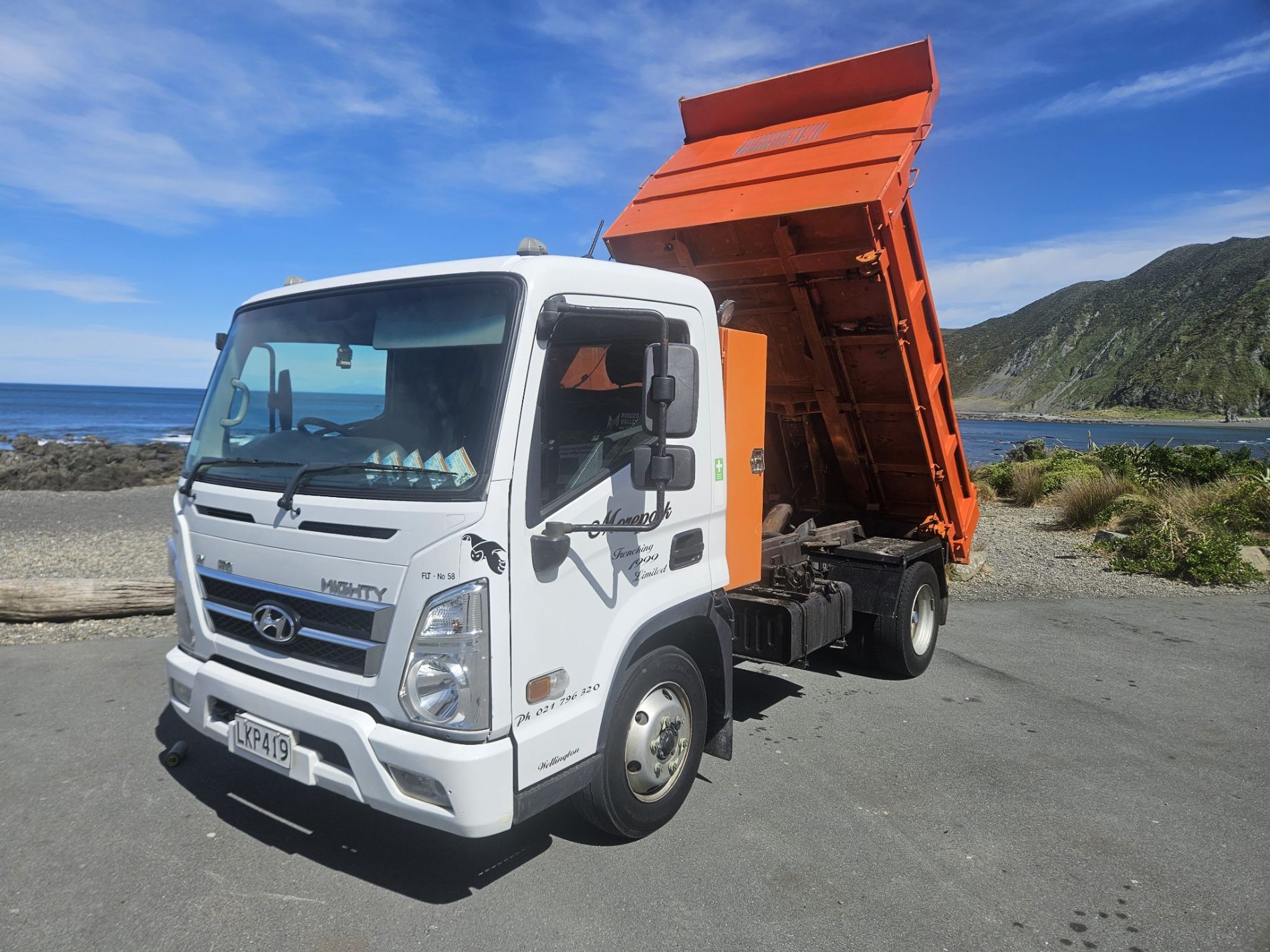 Truck comes complete with stone guard, sun visor, seat covers, floor mats, integrated reverse camera, belmont enginering 10 yarder hard steel 450 grade tipping body with trailer gear.